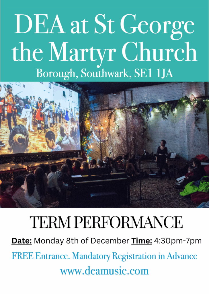 One of the most diverse music communities in the borough of Southwark, DEA Music and Art Studio London, a not for profit organisation was founded in 2013 by the concert violinist Alda Dizdari with the support of Southwark Council. The Academy is helping the local community celebrate cultural diversity and creativity through music. We are partnered with Southwark Music to provide even more opportunities to our students.